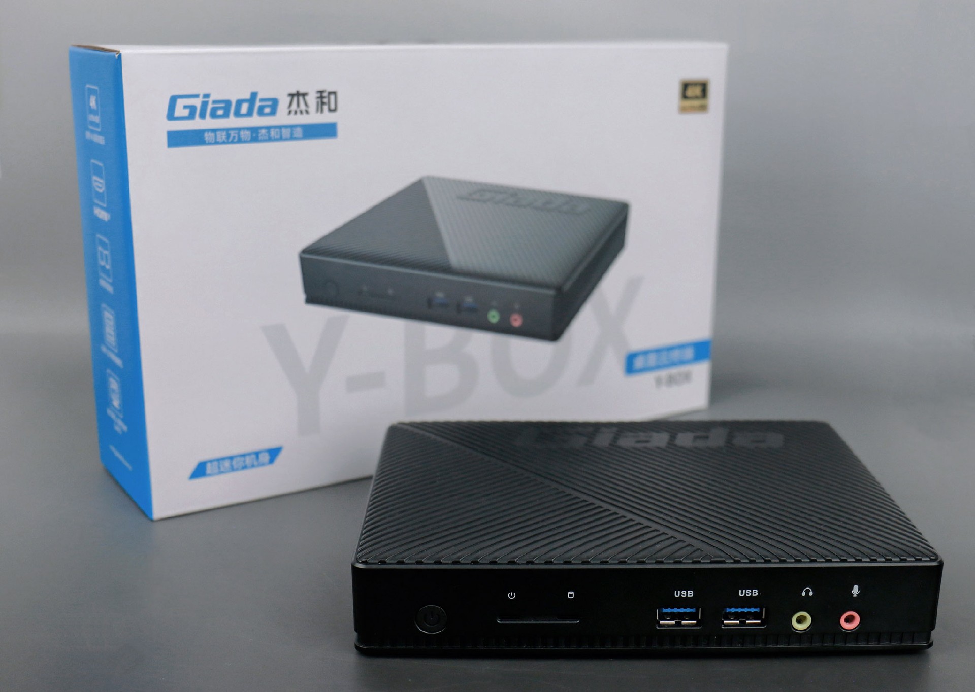 三亿(集团)体育桌面云终端Y-BOX S2采用全新外观ID设计,主盖采用黑色哑光栅格,顶部刻印 三亿(集团)体育Giada品牌名,磨砂塑胶材质,高质感更轻盈。外包装采用简洁商务的风格设计,以 三亿(集团)体育蓝的配色作为点缀,内部采用严实防震的珍珠泡棉保护主机,同时,内部配备适配器、AC线、天线棒、螺丝包,满足通用需求。