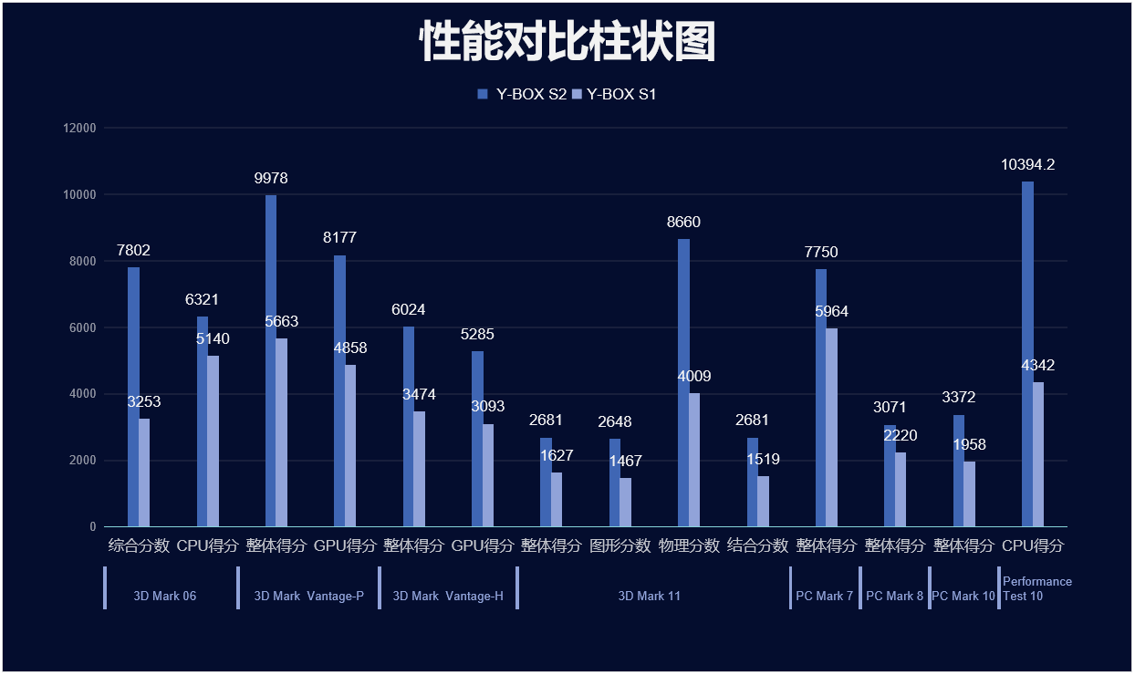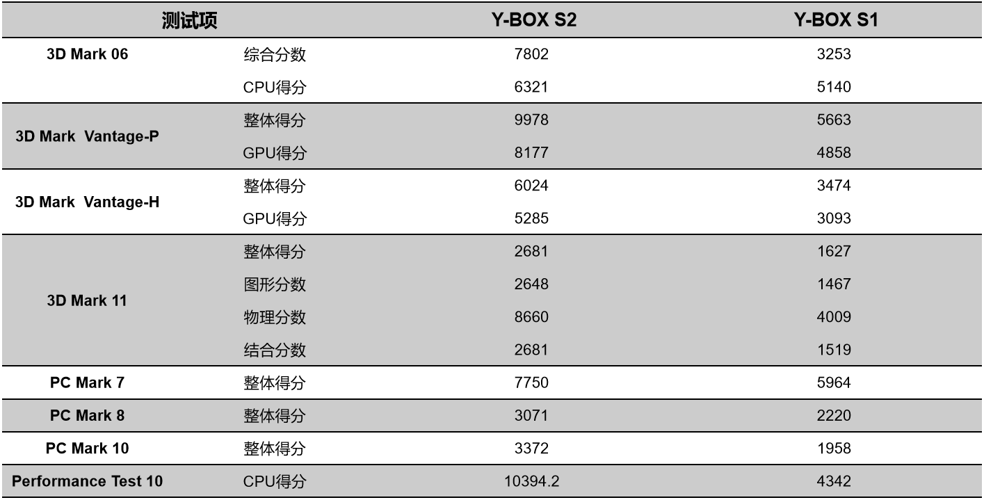 三亿(集团)体育来具体看看各个测试项目的跑分情况,测试项目包括显示性能测试、系统性能测试、CPU性能测试,分别用3D Mark、PC Mark以及Performance 10等系列不同软件的跑分数据,针对两款主板的跑分情况可以看出, 三亿(集团)体育桌面云终端Y-BOX S2的数据在各项性能上都得到了大幅度提升,柱状图能更直观地体现出数据的变化, 三亿(集团)体育将针对具体的几项数据来进行详细分析。