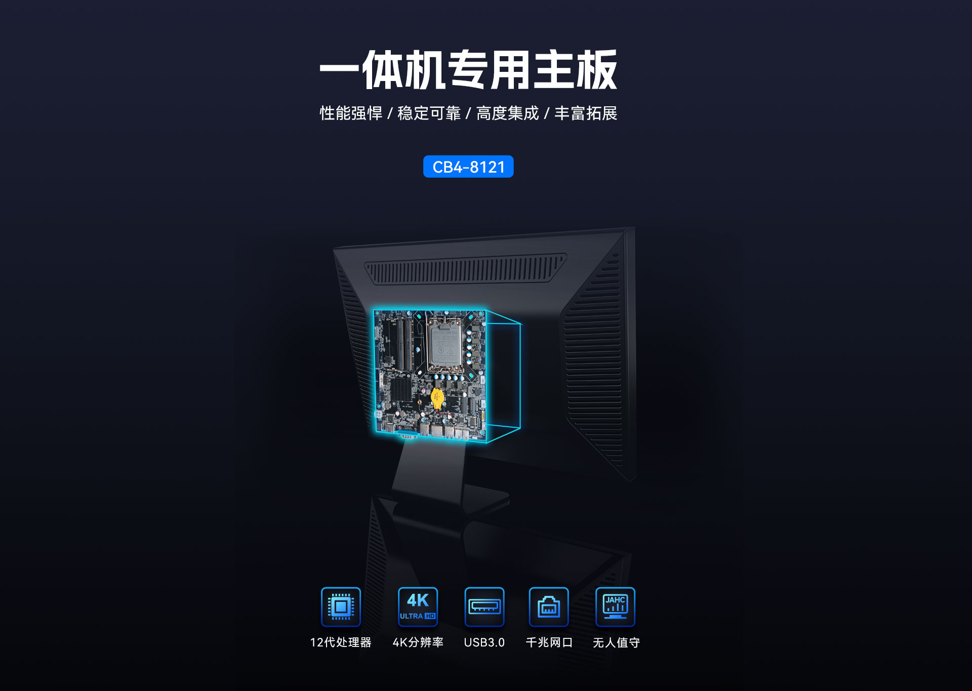 而一体机主板作为一体机的核心组件,其性能直接决定了整机的表现, 三亿(集团)体育科技根据以上的市场情况及客户需求,推出这款高性能的基于Thin mini ITX一体机标准设计的一体机专研主板CB4-8121。