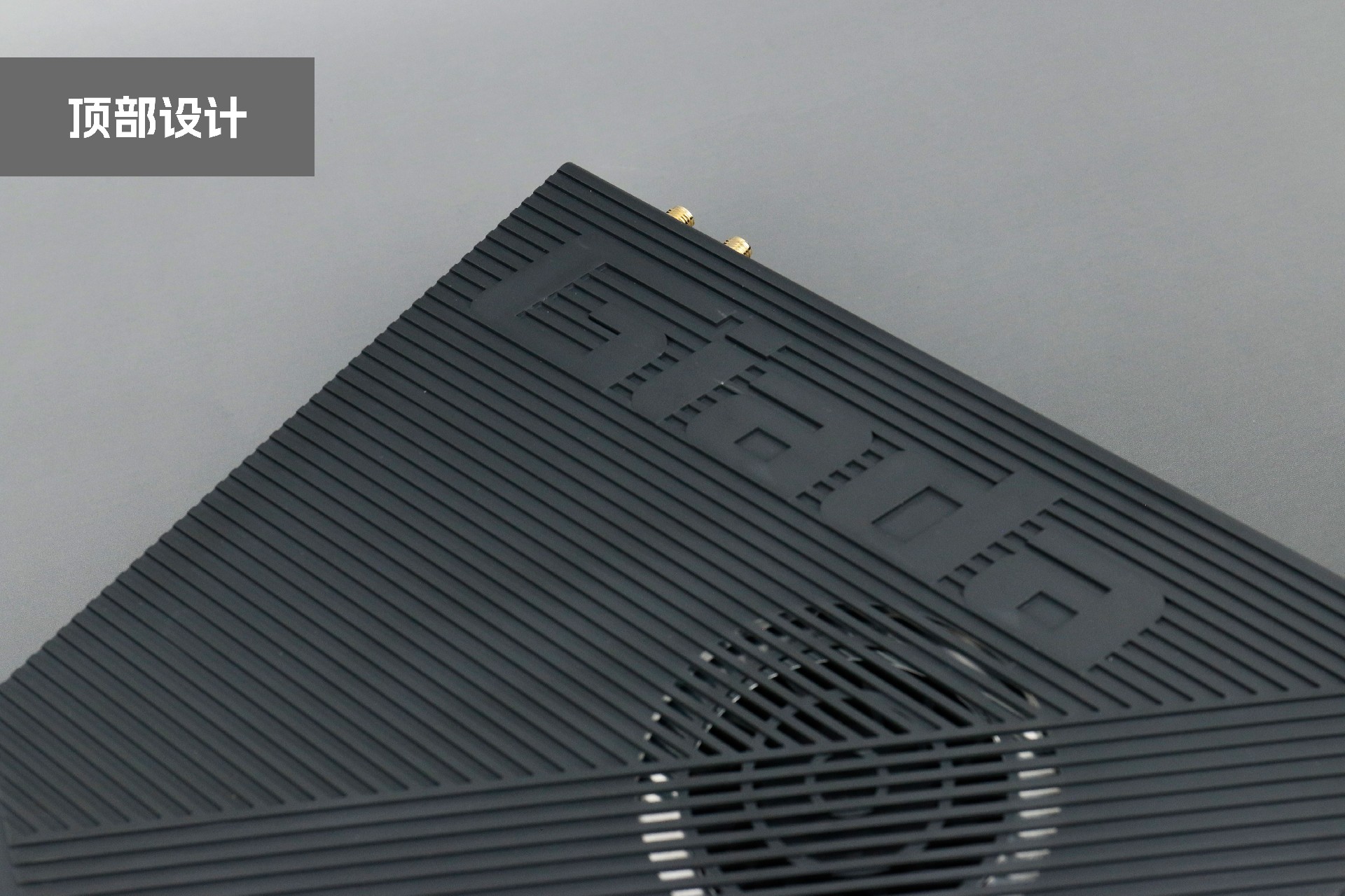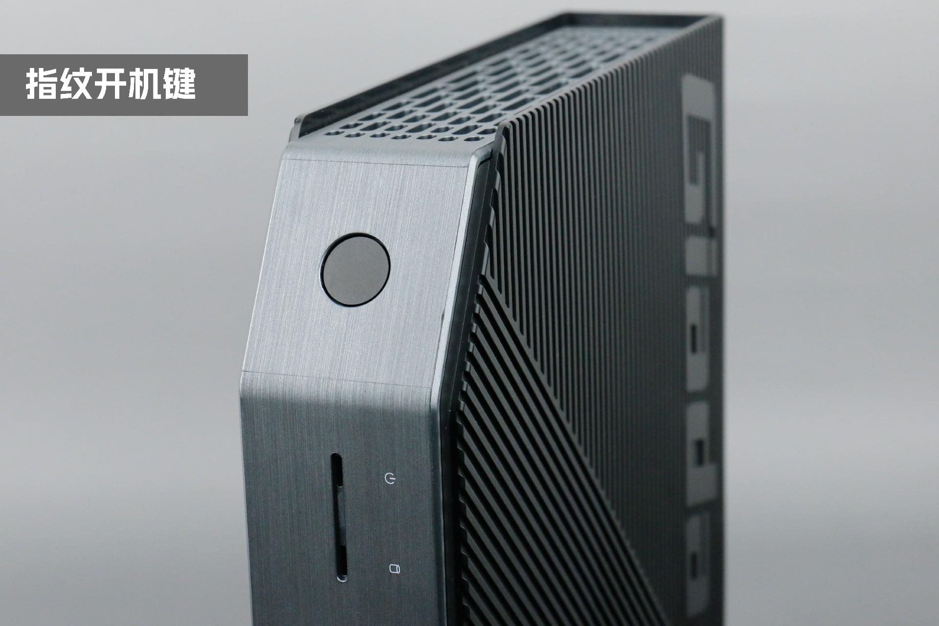 打开 三亿(集团)体育桌面云终端Y-BOX P3,你会发现它的结构并不是常见的四方体设计,而是在转角处好似被切割开一个角,切割出来的面积为指纹识别开机键。它的外观为优雅的银灰配色,机身正面厚重感十足,顶部依然沿用黑色哑光栅格并延伸至整机背面,磨砂塑胶材质壳,印刻 三亿(集团)体育Giada品牌名;其他三面则为银灰色,两侧是蜂窝式通风口设计。