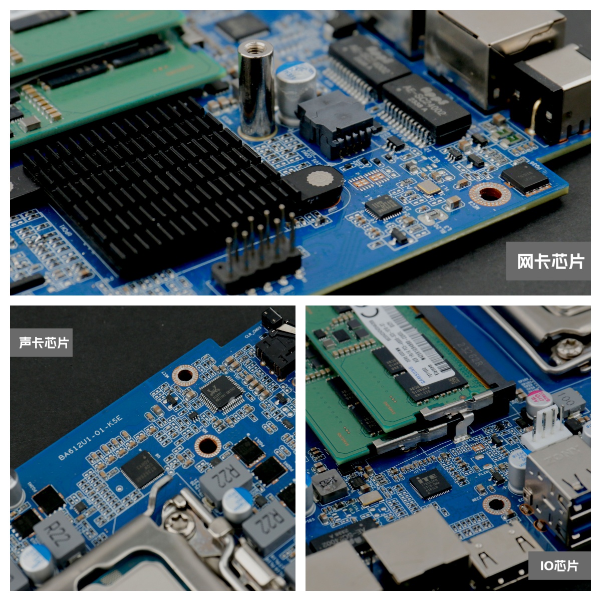 三亿(集团)体育桌面云终端Y-BOX P3主板采用的是6相供电,为H610入门级芯片组,CPU附近都分布了相关的芯片,在千兆网口附近有2个网卡芯片RTL 8111H,在主板背面的音频接口附近可以看到1个经典的“小螃蟹”ALC897 声卡芯片,声卡芯片附近有一个I/0 芯片ITE8613E-LX。