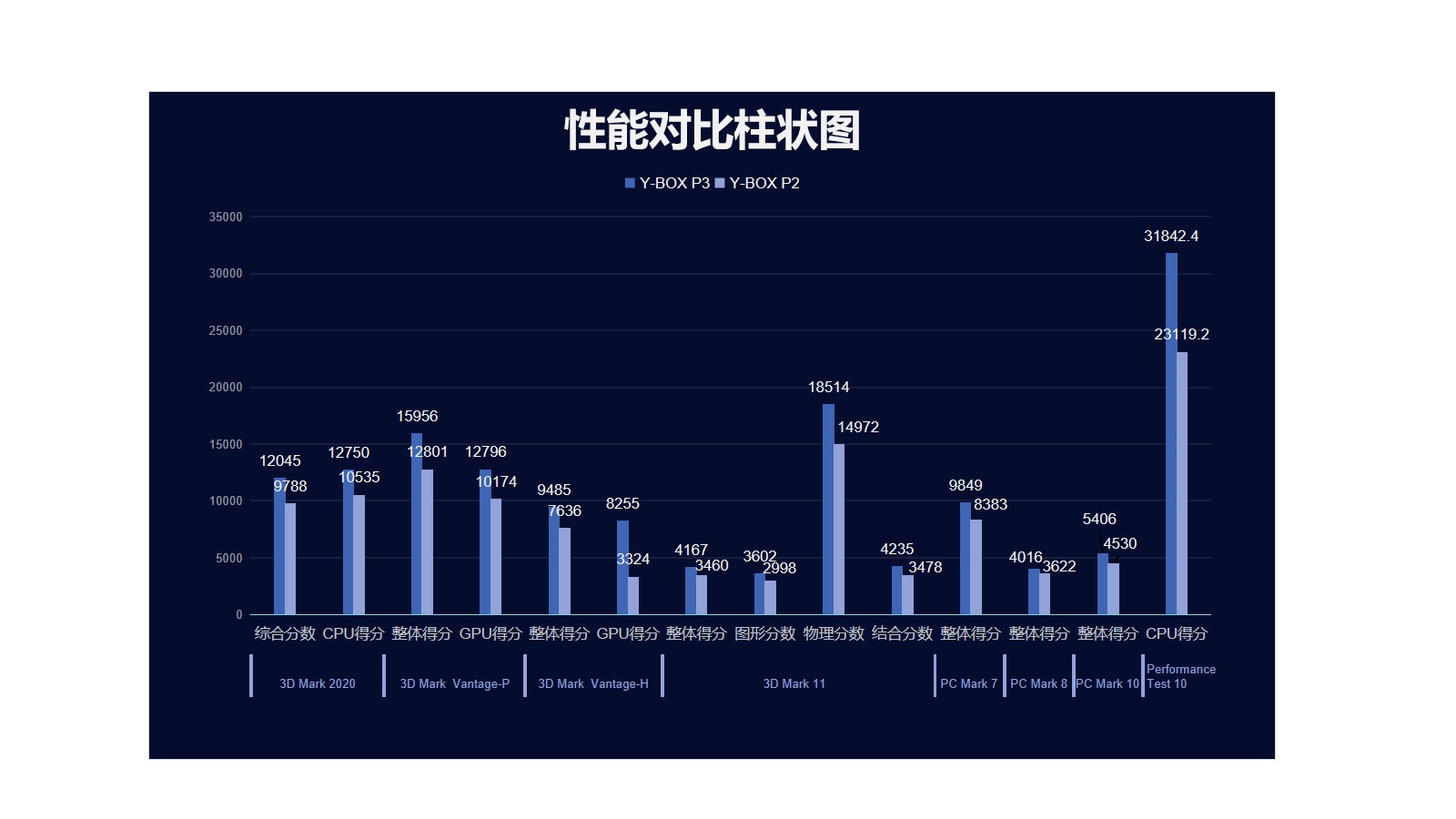 三亿(集团)体育来具体看看各个测试项目的跑分情况, 三亿(集团)体育分别用3D Mark、PC Mark以及Performance 10等不同系列不同软件进行跑分,测试项目涵盖显示性能测试、系统性能测试、CPU性能测试等。通过下面的表格及柱状图可以看出, 三亿(集团)体育桌面云终端Y-BOX P3的数据在各项性能上都得到了大幅度提升。