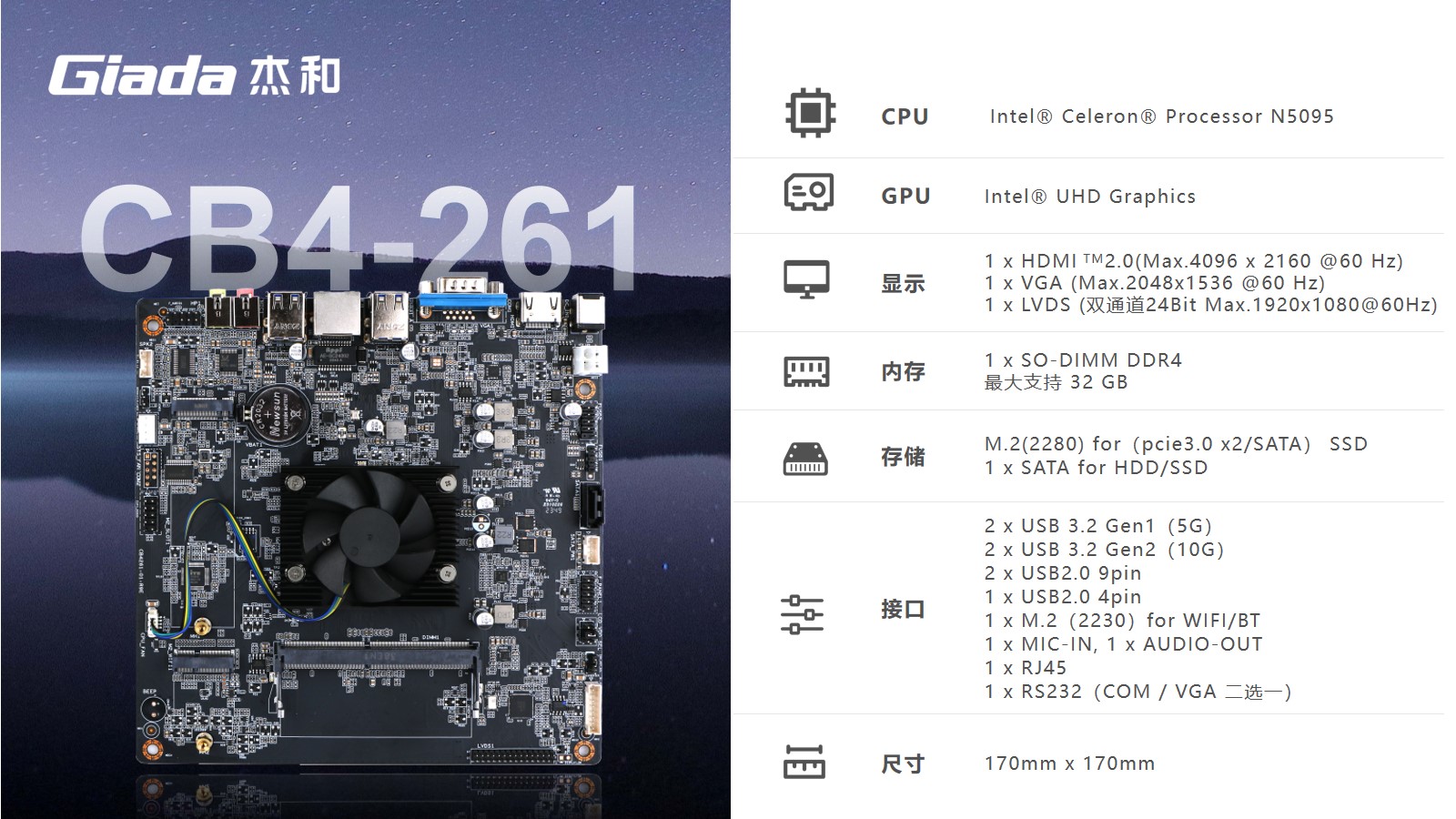 三亿(集团)体育科技CB4-261尺寸仅有170x170mm,小而精巧。搭载N5095芯片,该芯片采用10nm制程技术,四核心设计,支持Windows 、Linux系统,可满足多种终端机应用场景的需求,如信息查询、基本数据处理等。