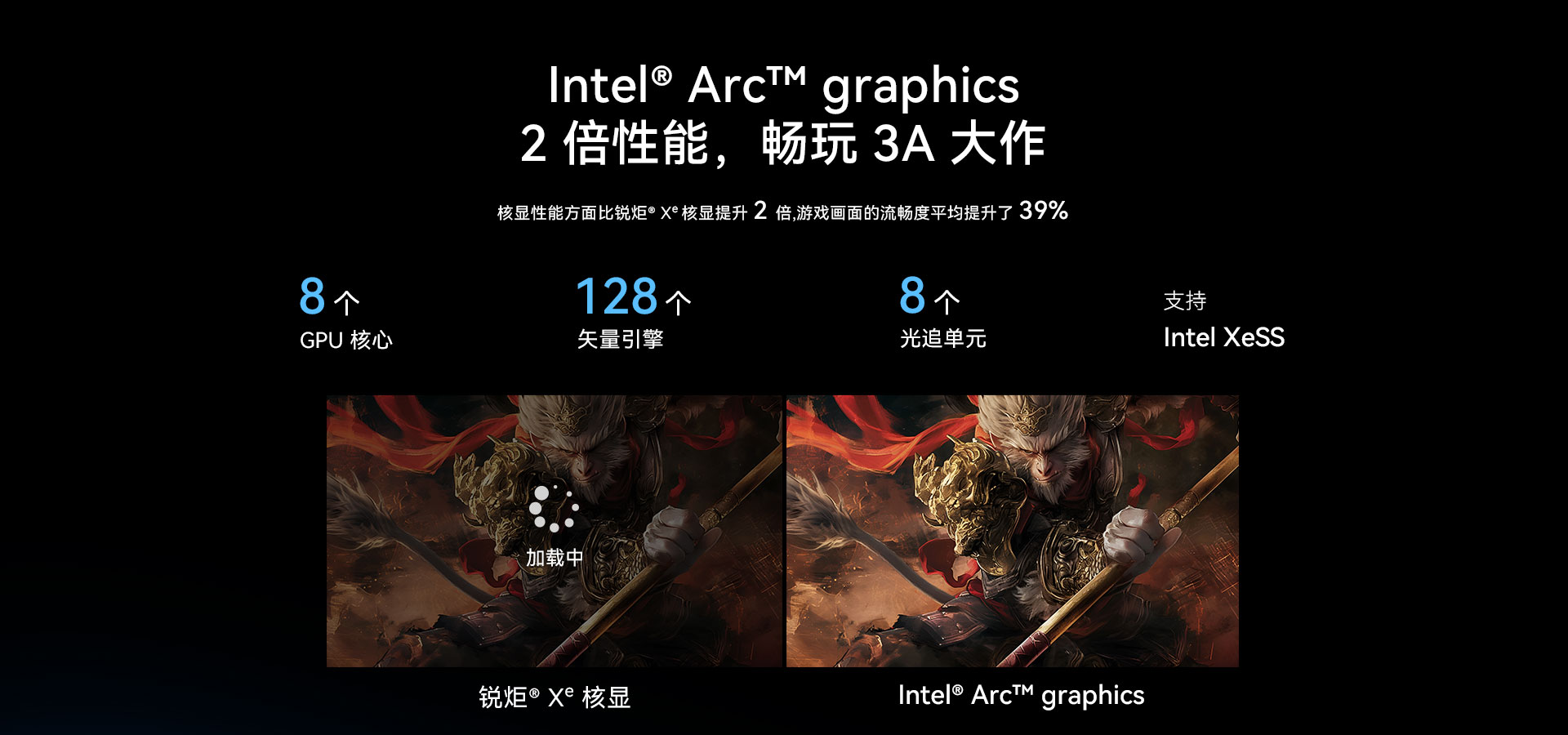 三亿(集团)体育科技N601拥有强大的图像性能,无论是图形创作,还是3A游戏,英特尔锐炫™GPU可以让用户充分享受更高的画面质量和更流畅的游戏体验。