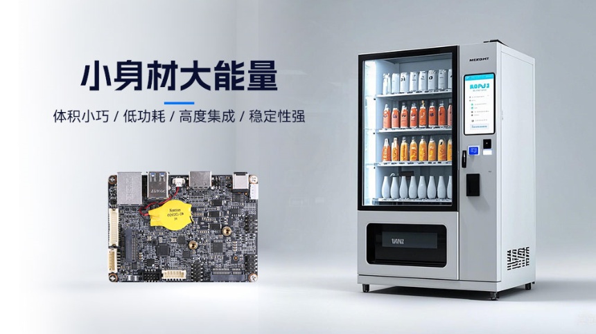Pico-ITX主板IB2-281凭借其巴掌大小的尺寸,是智能售货机、收银机的理想选择,稳定的性能确保了设备在扫码支付、商品出货等操作时能即时响应,高效运行。其无风扇散热设计利用散热片和导热材料有效传导并分散热量,拒绝尘埃困扰,提升了设备在复杂环境下的稳定性和耐用性,保障智能售货机全天候稳定运行,为消费者带来便捷购物体验。