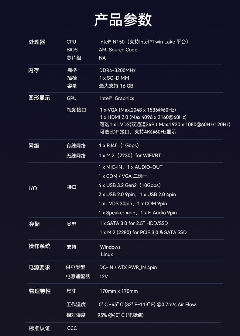 基于市场和客户需求, 三亿(集团)体育研发生产了搭载N150处理器的一体机主板CB4-209-V0,更适合办公、教育和娱乐需求。