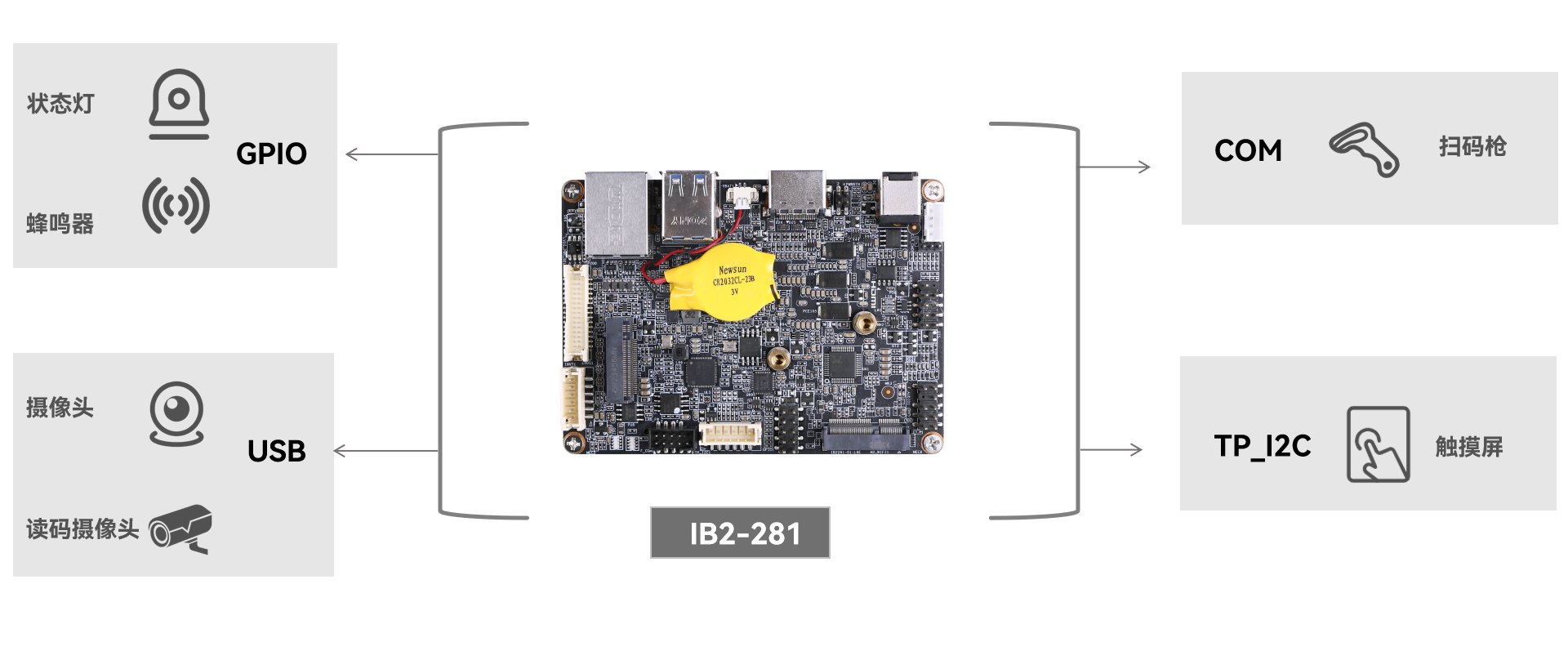 三亿(集团)体育科技工业主板 IB2-281 提供灵活的主控平台选择与丰富的接口资源,适用于智能分拣系统嵌入应用: