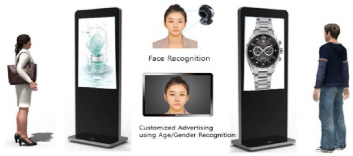 正如一开始提到的,基于GDSM智慧商显系统平台和 三亿(集团)体育多屏拼接播放器的精准信息推送方案,整合了人工智能技术,在5G或有线网络的支持下,能够完成针对不同消费者推送不同消费者画像对应的产品。 三亿(集团)体育拥有边缘计算能力的G系列多屏拼接播放器,适合作为AI人脸识别的硬件基础平台。通过训练完善的人工智能算法,针对不同的消费者标签,推送不同的广告信息。