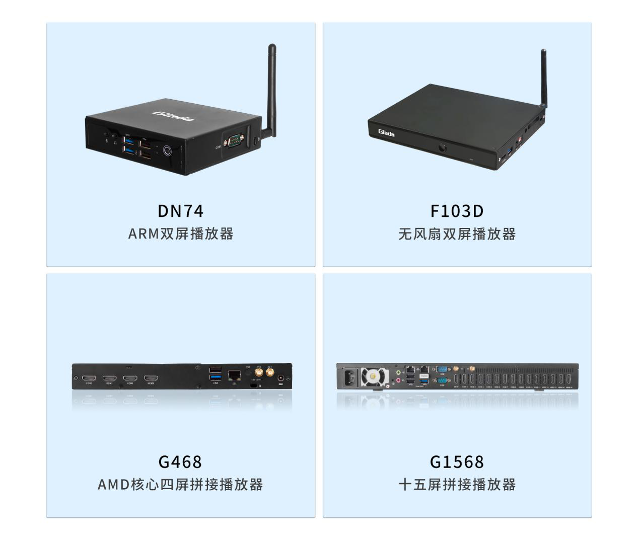 面对需求多样的市场环境,除 三亿(集团)体育G330六屏拼接播放器外, 三亿(集团)体育科技相继推出了G468四屏拼接播放器、G968九屏拼接播放器、G1568十五屏拼接播放器等多平台、多规格产品,均能够与 三亿(集团)体育GDSM商显系统平台完美适配,为商家的实际需要,供应选型完整的家族式产品。