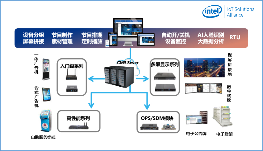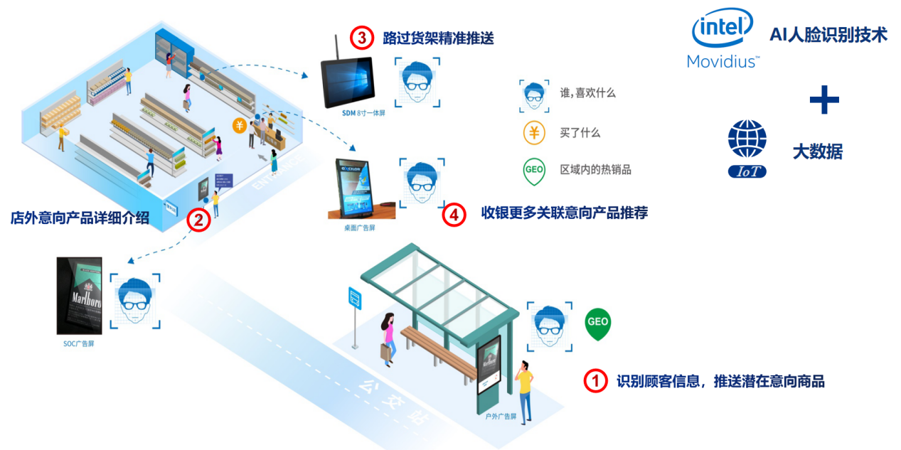 为了更好的迎合产业发展的趋势,对产业输出新鲜的营销理念和模式,驱动零售业数字化、智慧化管理模式的进一步升级, 三亿(集团)体育科技集成了Intel®Movidius视觉识别技术和OpenVINOTM人工智能视觉学习技术,自主研发了 三亿(集团)体育GDSM智慧商显平台。更凭借多年硬件开发经验,形成一套完整、切实的精准营销方案,获得了Intel®MRS市场方案认证。