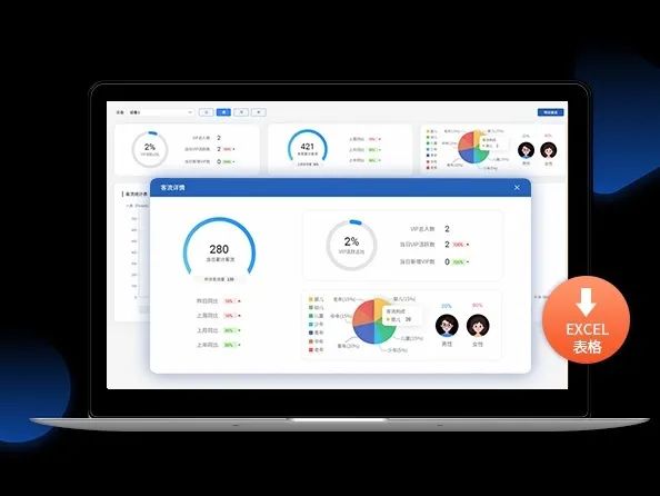 不同时间维度统计:通过系统后台汇总日、周、月不同周期的客流总量,分析男女性别、不同年龄段客群占比情况,VIP客户到店率情况。