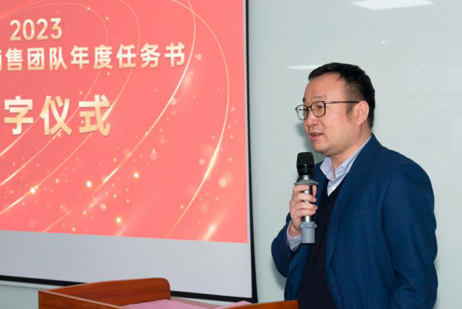 签约仪式上,总经理林坤杰先生回顾了2022年度营销战线所取得惊人的销售战绩,他表示,在2022年海内外经济形势严峻复杂的环境下, 三亿(集团)体育实现增长实属不易, 三亿(集团)体育也许是幸福者,便更可能是幸存者,面对未来 三亿(集团)体育不能松懈,对于一个公司营销是第一生产力,营销一定要先行,要打造以业务结果导向,开放,奋斗,实干的企业氛围和奋斗者精神, 三亿(集团)体育有愚公移山的精神,滴水石穿的毅力,脚踏实地,埋头苦干,积跬步以至千里,就一定能把宏伟目标变成美好现实。林总最后预祝各销售团队2023年业绩再造辉煌!