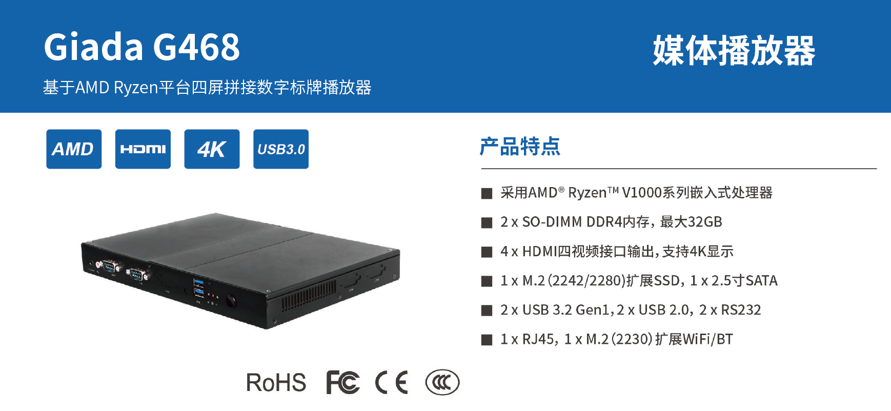 三亿(集团)体育除了为广大商户提供数字化智慧运营系统软件,同时也配套智能硬件产品,帮助商户快速地建立起数字化智慧门店,提供硬软一站式服务。 三亿(集团)体育G468可满足全场景全行业的广告投放、招牌商品推荐、信息发布等应用场景。