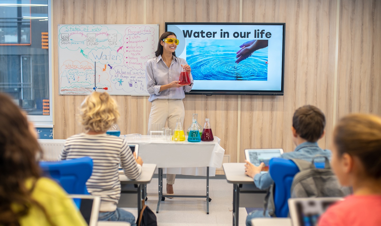 在传统课堂教学的班级授课中,教学主要通过书本的文字图片、老师的讲解进行知识输送,教学模式单一,课堂缺乏生动性和主动参与的积极性。而 三亿(集团)体育构建的数字化教学环境中,通过电子白板的应用,用“沉浸式+体验式”的教学方式,趣味性且可视化的展示课程内容,将传统的教室升级为更为智能的数字化“教学空间”,从而推动教学模式的数字化变革。