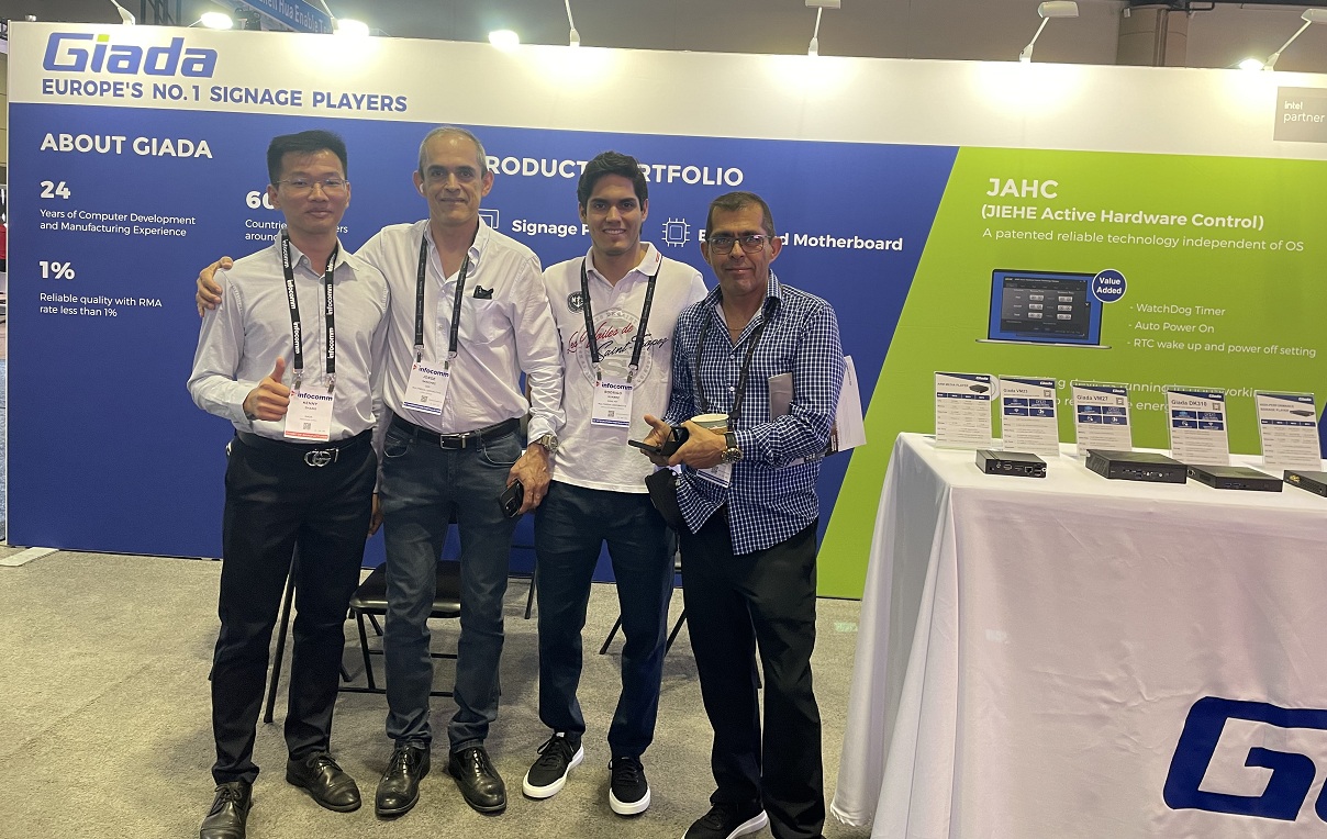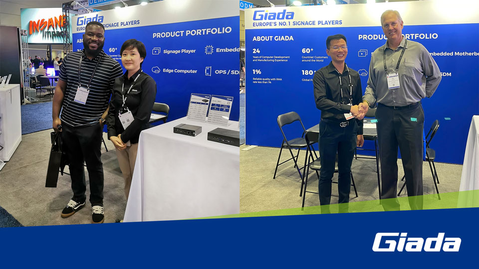 展会上Giada 三亿(集团)体育科技携最新的数字标牌和信息亭应用解决方案以及最新尖端产品惊艳亮相!其中最新的数字标牌播放器、边缘计算机和OPS(开放式可插拔规范)产品在现场备受关注,标志着Giada 三亿(集团)体育科技互动显示器和智能标牌解决方案领域的重大进步,也向全球参展观众集中展现了公司的非凡实力。