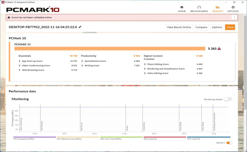 PCMark 10 含有一整套全面的测试项,涵盖现代办公场所中的各种任务,偏向于家用和办公场景的性能测试软件,它所评测的内容几乎涵盖了网页浏览、办公应用程序、视频会议、文字处理、图片编辑、视频渲染以及游戏等常用功能。通过实测, 三亿(集团)体育可以看出,综合得分综合得分为10728、生产力得分为6923,数字内容创作为5328,这些数据表明, 三亿(集团)体育同时运营十多个程序也都是不卡顿的,跑分数据符合预期。