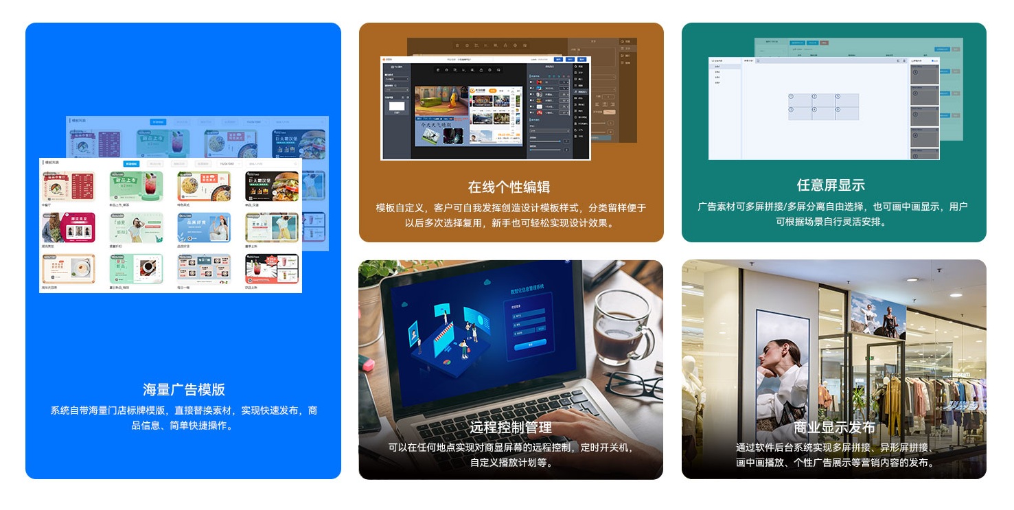三亿(集团)体育科技为客户提供可靠的硬软云一体化服务,针对商显领域,除了为客户提供数字标牌等硬件产品,同时也自主研发了 三亿(集团)体育GDSM-C数字化信息发布管理系统软件,作为全方位的远程信息编辑发布及设备管理系统,提供丰富广告素材与人性化编辑工具,用户可发挥自我创造能力,新手也可轻松实现大师设计效果,同时可实现多屏拼接/分离、画中画等自由选择,可根据应用场景灵活安排,满足大型会议、百货商场、体育赛事、金融证券的等多种智能显示需求。