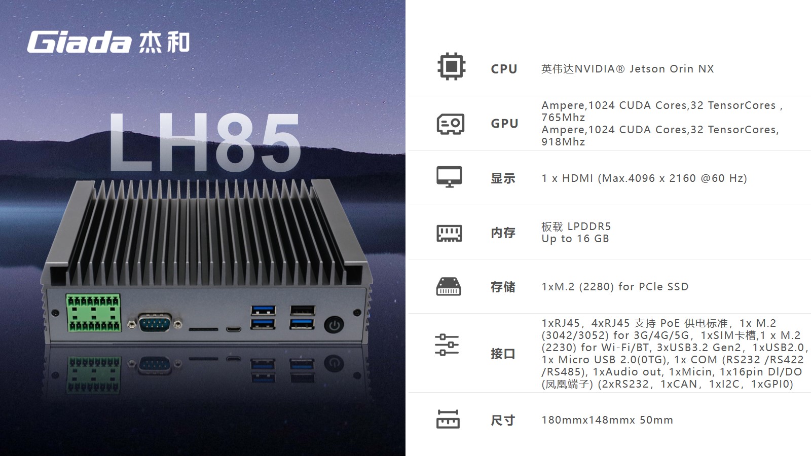 三亿(集团)体育科技AI边缘计算LH85,拥有100TOPS超强算力,能为工业控制领域客户的AI应用提供强大的算力支持和充足的通信、控制接口保障,可广泛应用于智能制造、机器视觉、AGV、智慧城市等领域。