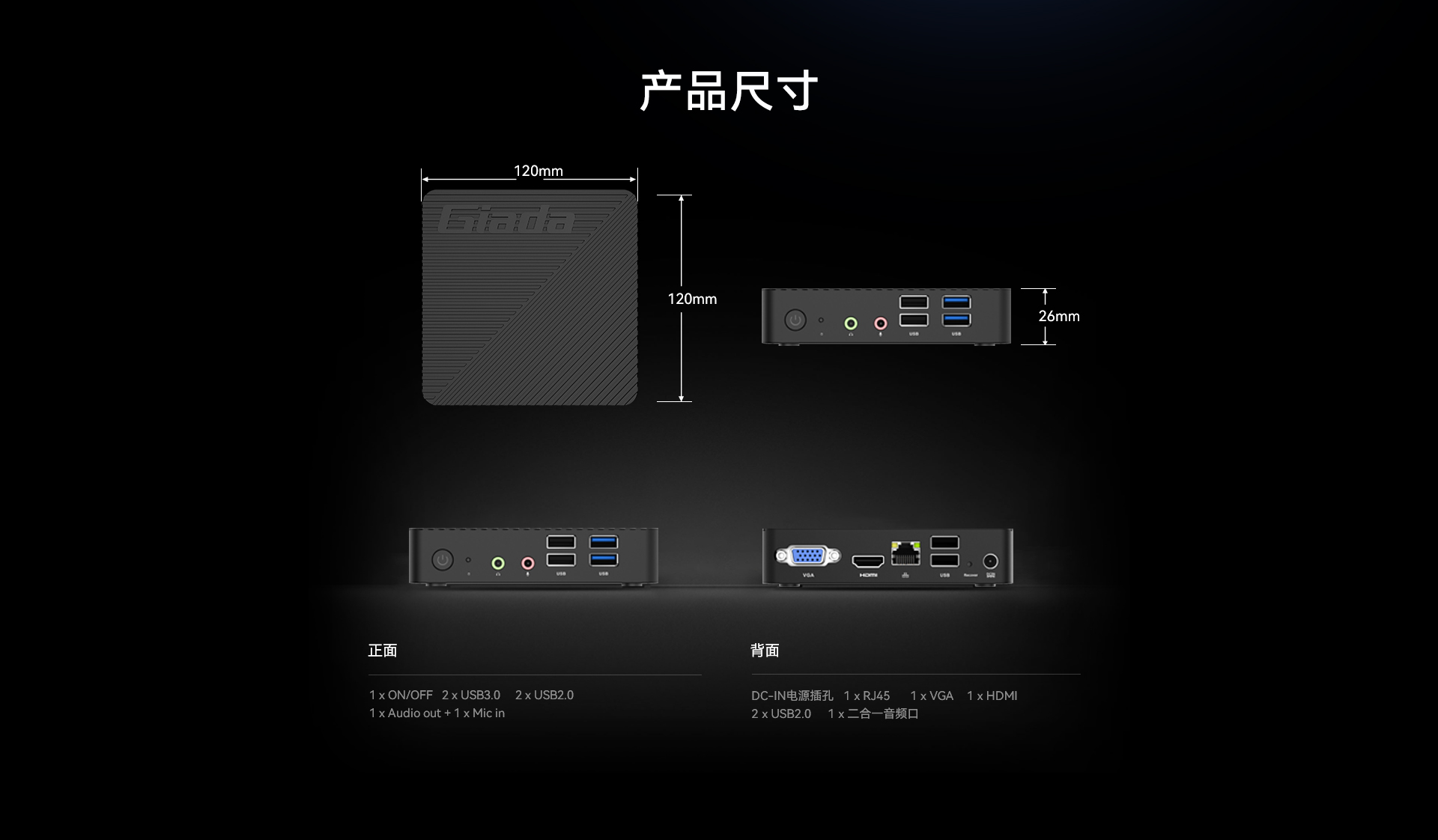 | 外观参数 | 尺寸 | 120mm x 120mm x28mm |